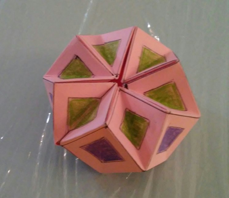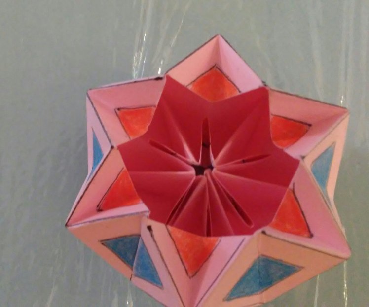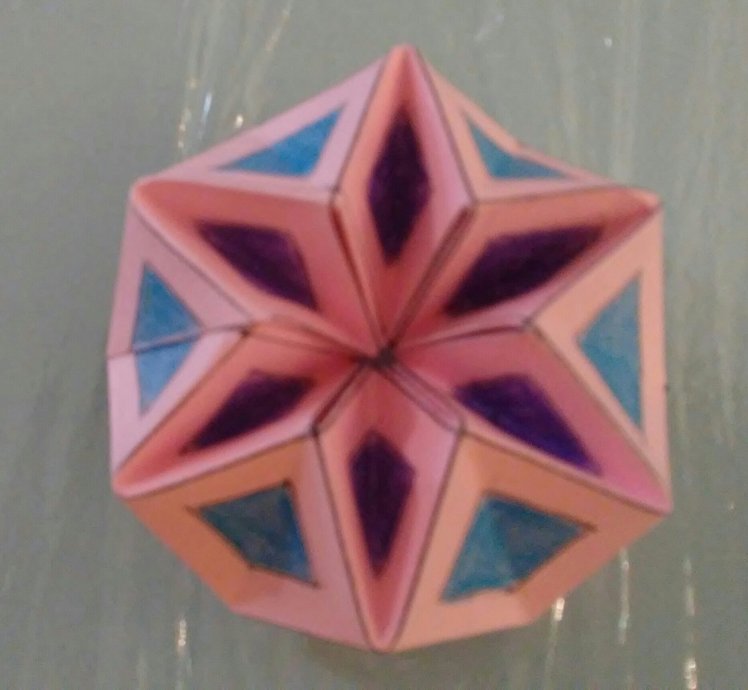 As you have seen in these pictures, the Hexaflexagram is amazingly flexible. It is also strong enough to support weight, much like the accordion pleat in the last post. I hope you have enjoyed learning about flexagram.