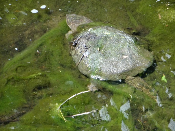 These turtles can grow to massive sizes. Below is a picture of one I saw in a stream-bed under a dam at Radnor Lake State Park in Brentwood, Tennessee. It was about three feet long.