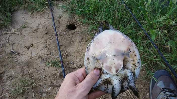 One of the turtles was much different from the others. It was a soft-shelled turtle. The picture above shows the underside of a Soft-shelled turtle.