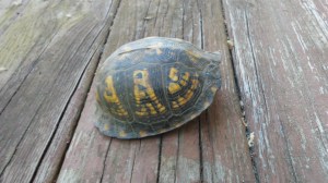 Here is the loser in my hand showing the bottom side of his shell. As you can see, God gave these turtles an excellent way to protect themselves by not only having a shell, but a trap door to shut to keep their enemies out. This is an amazing example of God’s “bio-engineering”. We can learn a lot from creation about how to design our own projects. This is quite a suit of armor for these little turtles!