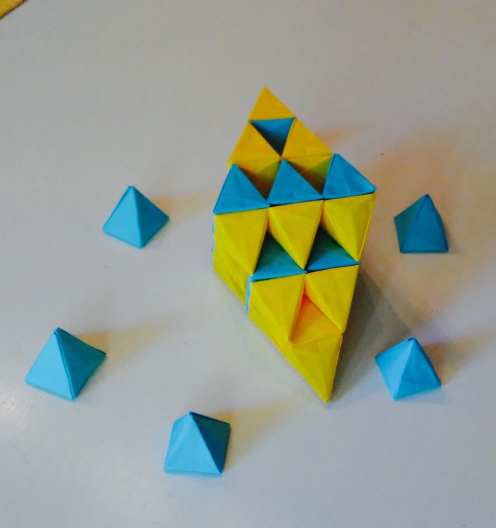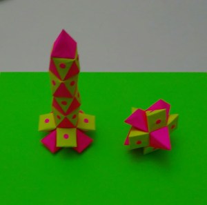 Now that you have learned how to fold and glue them into pyramids, lets see some other ways to combine them to make interesting shapes.