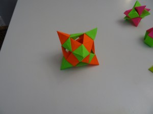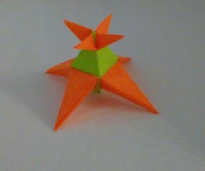 Another student glued seven of the pyramids into a circle to make the Keifer Interlock: You can see the wheel base in the center of this star form to which I added seven outer pyramids: