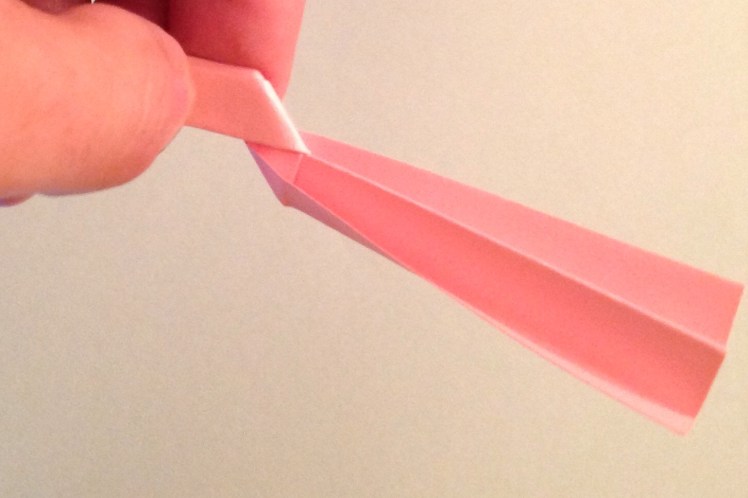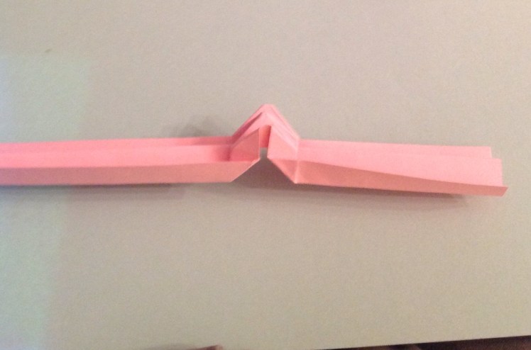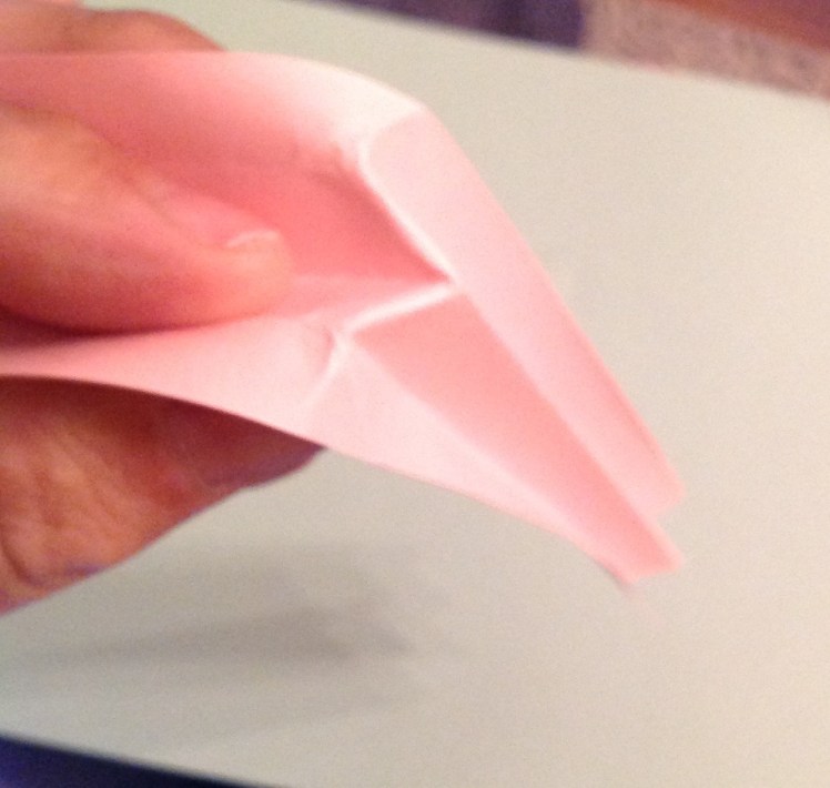 Place a finger in the middle at the middle point that looks like a house top and push it in to turn the mountain fold into a valley fold. Then squeeze the fan to set the creases.