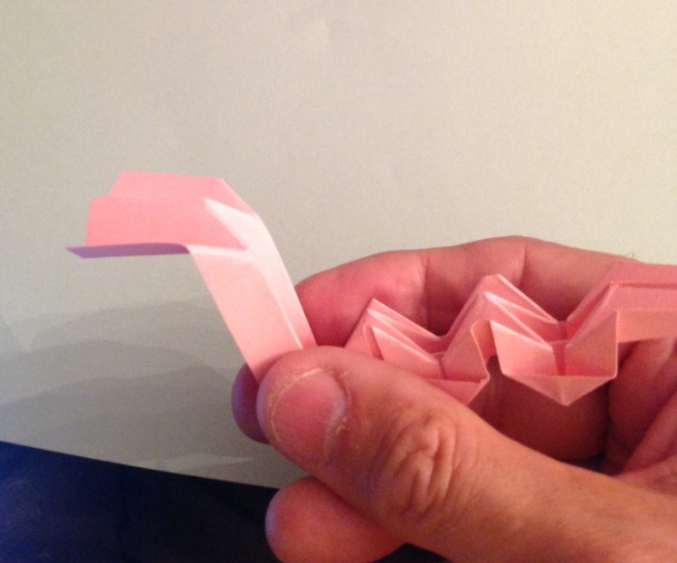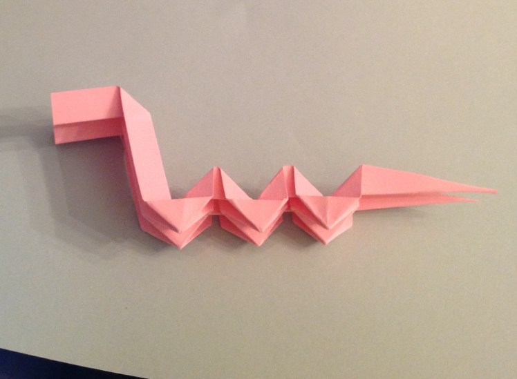 As you can see in the above photographs, you can make the folds bend in many ways to create just the look you want. Some are just up and down diagonal hood and pop folds. Others, like the pink one, are developed by combining folds that bend back over previous folds and then back out again. Experiment and you can create several different snake types. I even made some with Cobra Hoods.