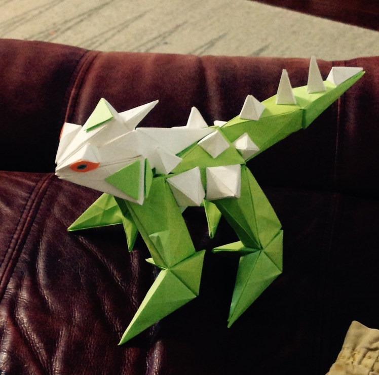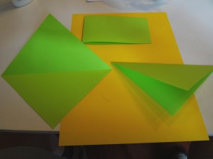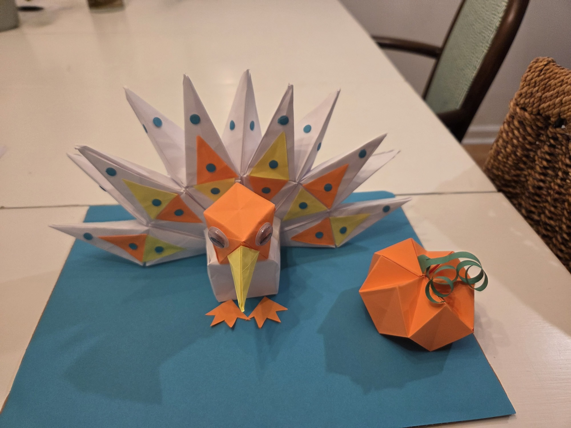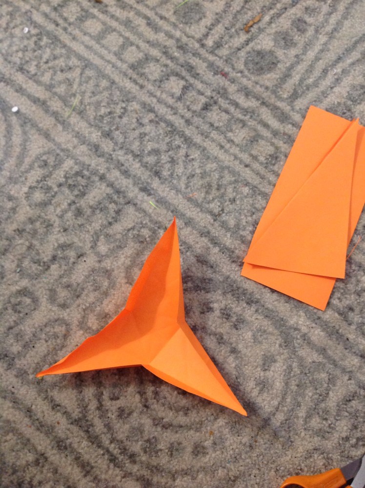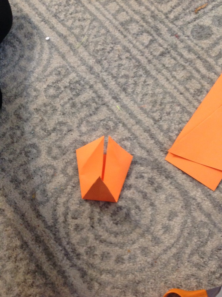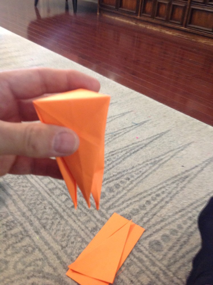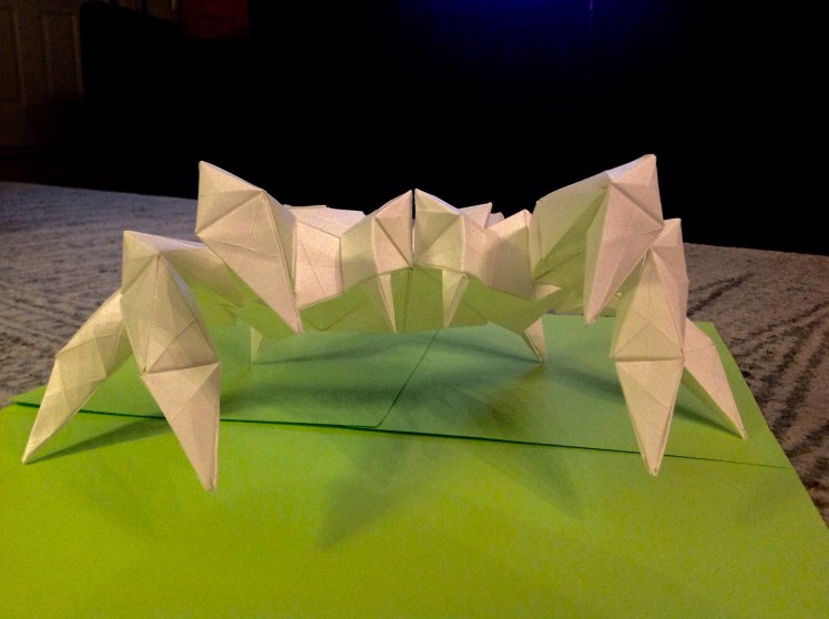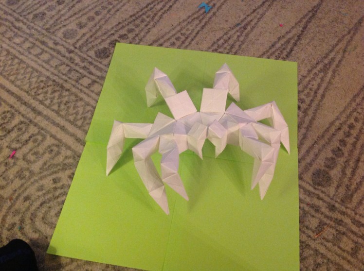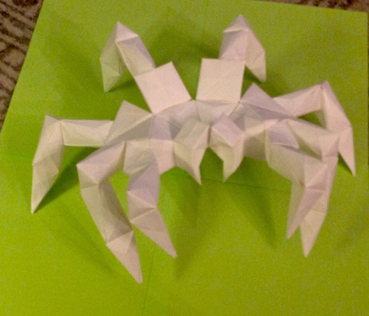 In one of my earlier posts I showed you how to fold paper pyramids. In that post I showed you some of the creations you could construct by combing the units. This past week I have been trying to create some paper creatures to show my class Some of the possible things you can make with pyramids.
