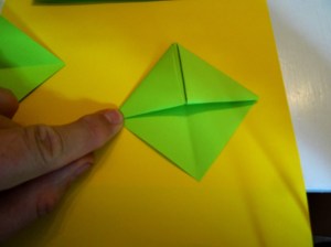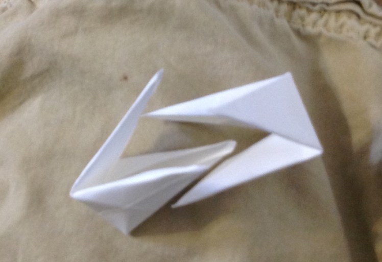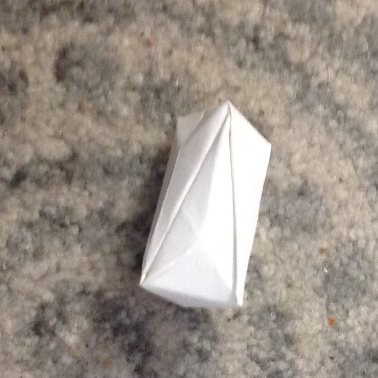 Open up your folds and pinch the middle of each of the three sides. It should pop up to look like this: