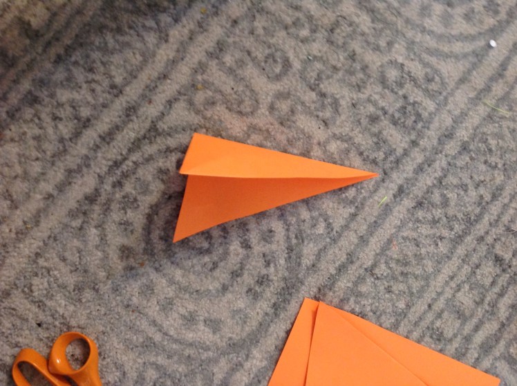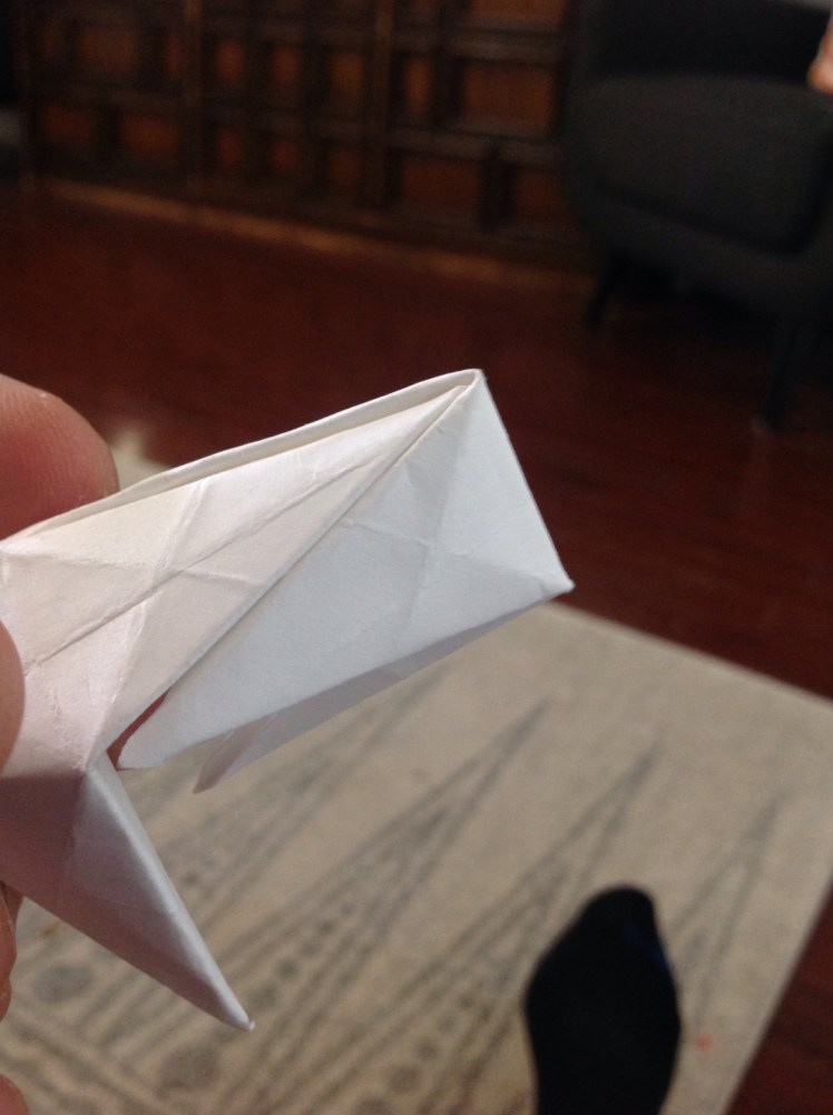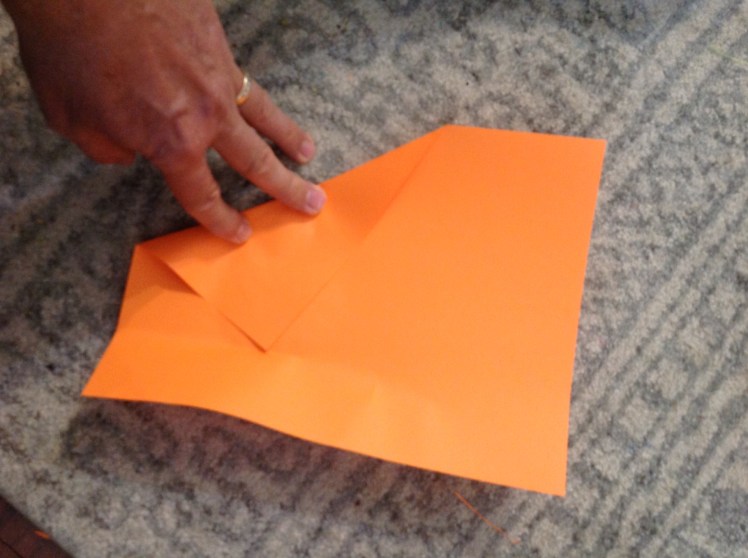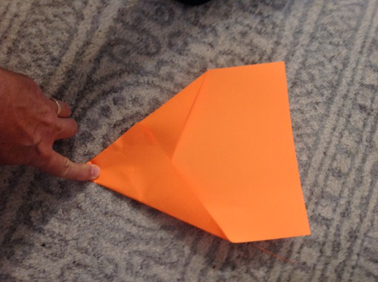 Then bring the other side up to the diagonal edge of the first side so the paper has an airplane point at the bottom.