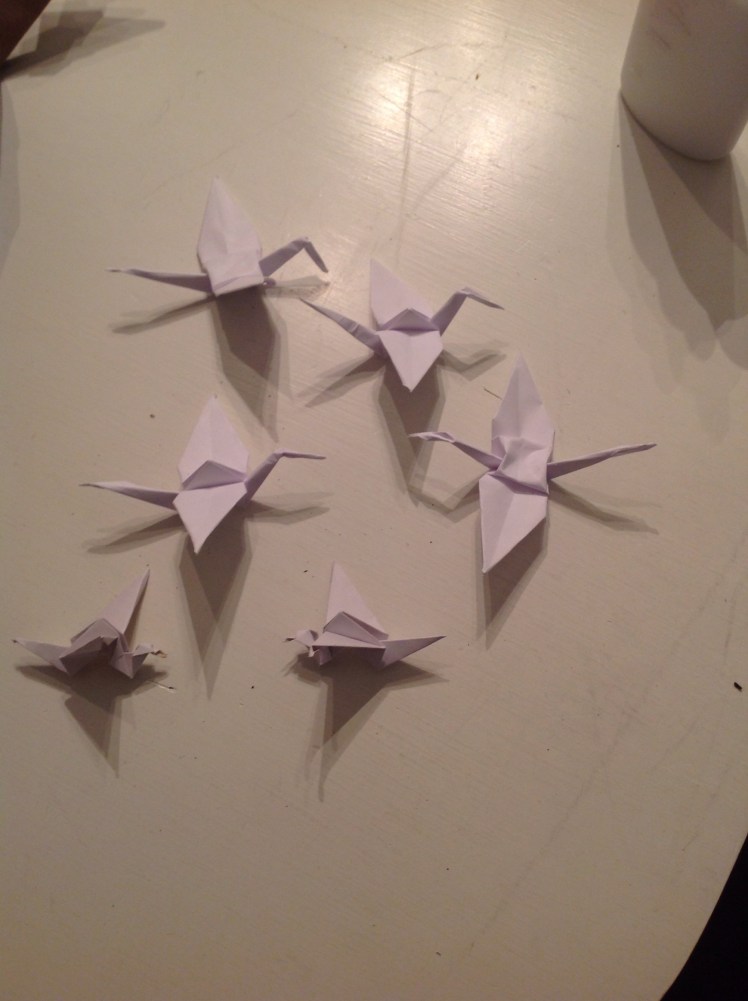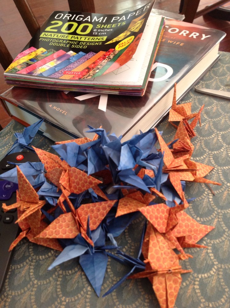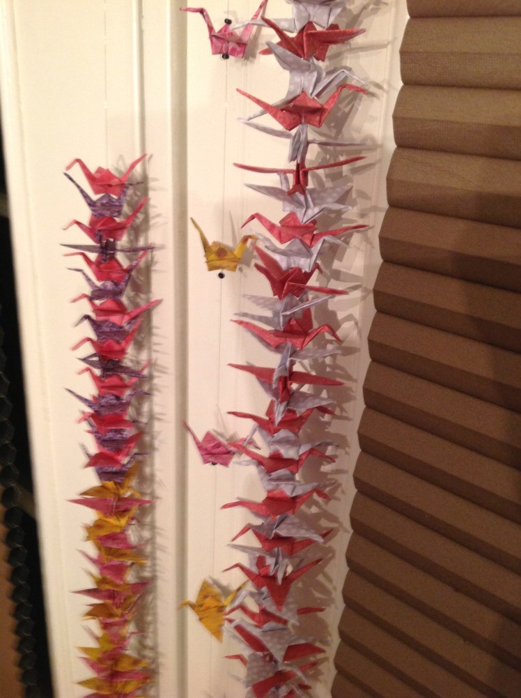 If you want to try folding cranes, don’t be discouraged if you don’t have the time or patience to fold 1000. Many people use far less than 1000. Some people just buy them already folded….but where’s the fun in that? And believe it or not, they are not cheap! Check it out on line and see what I mean!