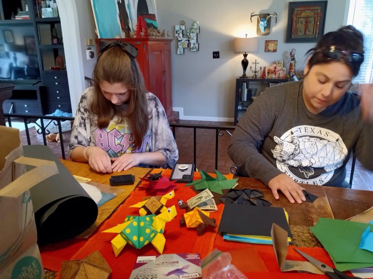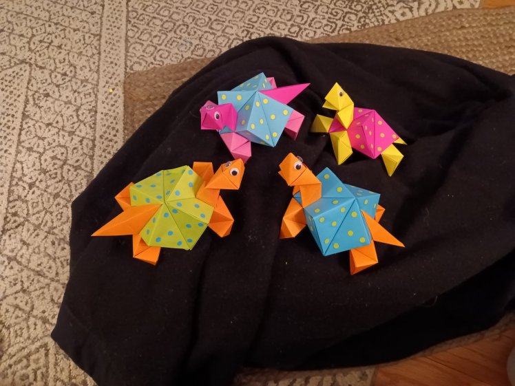 Below are three turtle lovers from Texas Turtles making their own origami turtles. It’s fun doing Origami with friends.