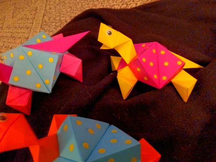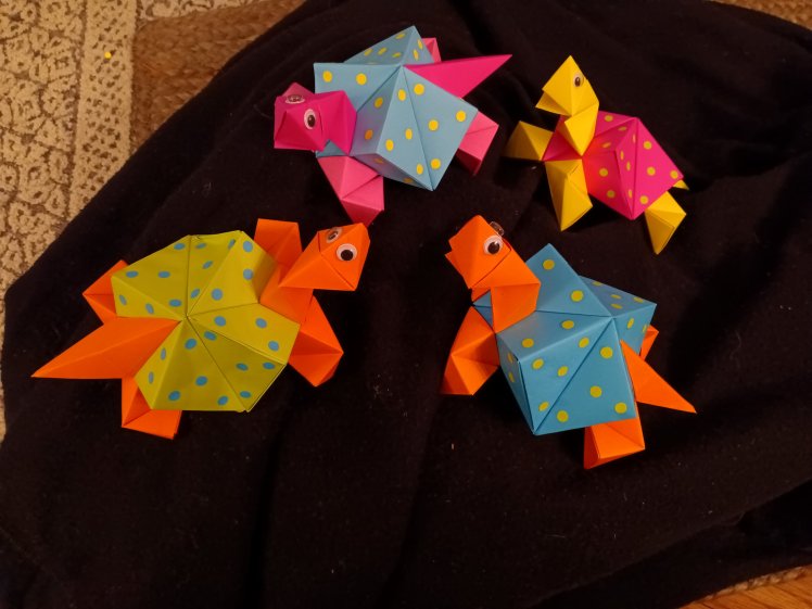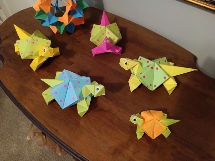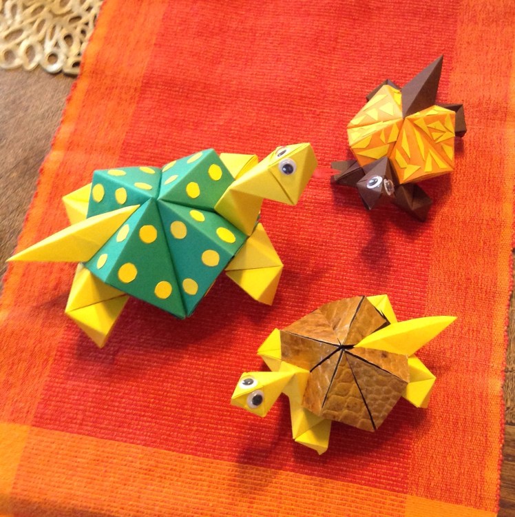 I recently posted pictures of my turtle sculptures on two Origami Facebook Group pages. After they were seen by many, a couple requested directions for making them. I had told the group where they could find the directions for folding the base units but not how they went together to make the completed turtle…..so……Here goes!