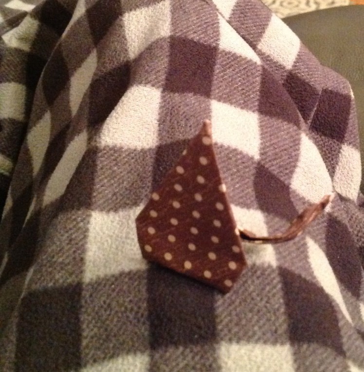Add glue to one end of the tail all the way to the middle putting the glue on the outside edges. Flip it over and place it as shown below. You will have to hold it while it dries.