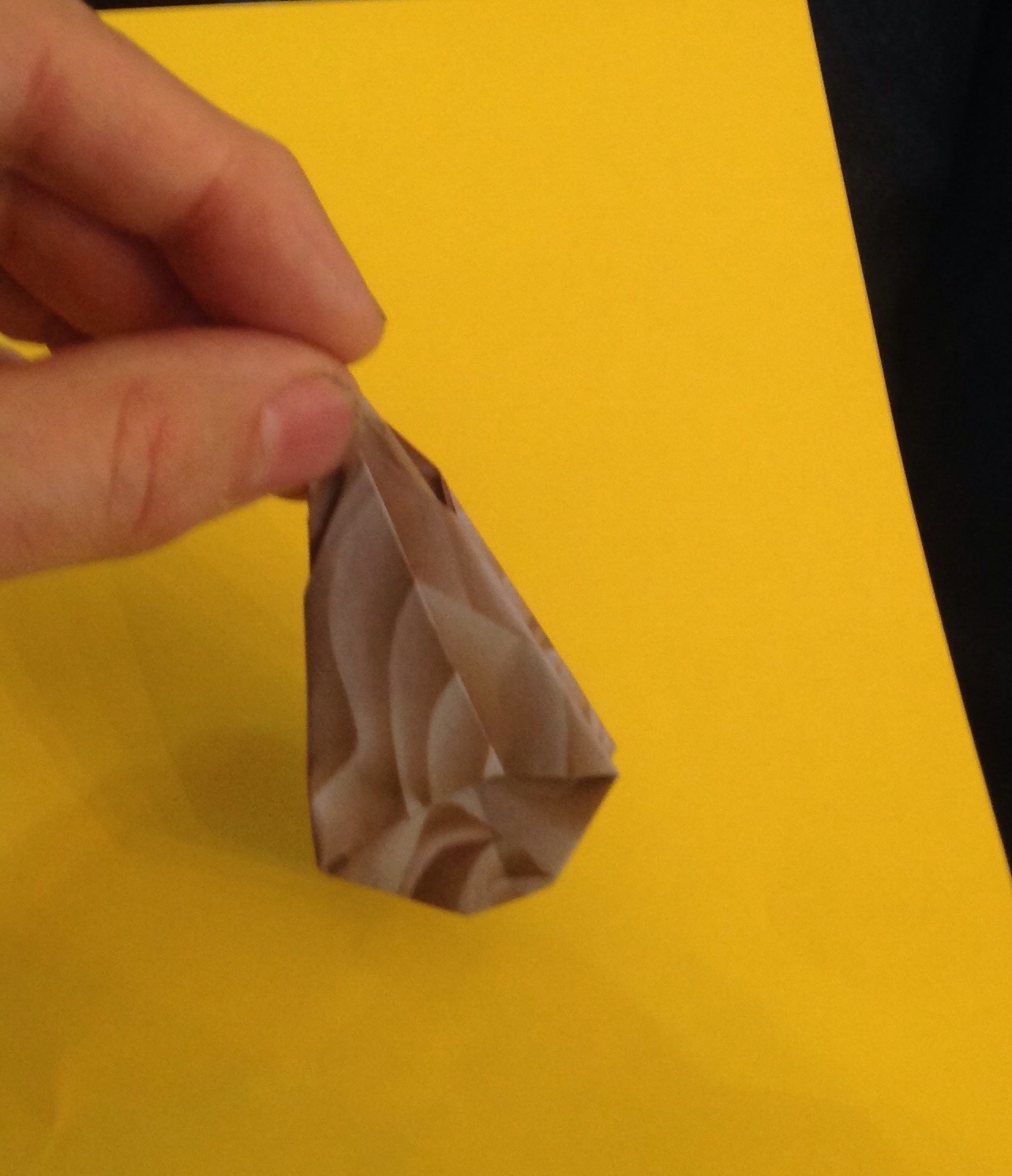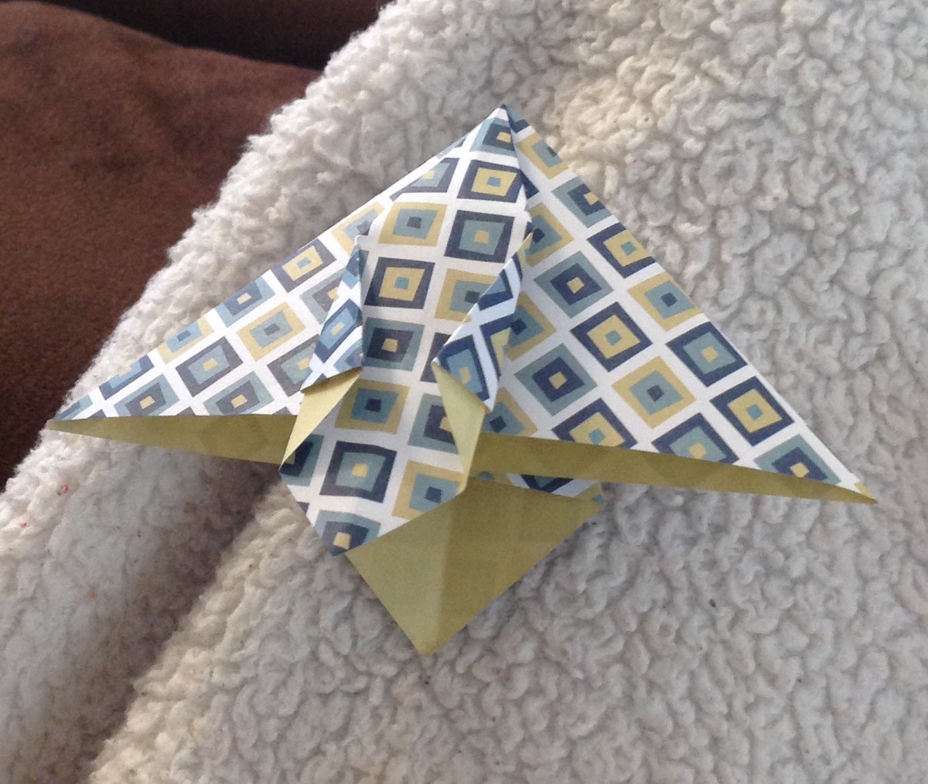 Did you see what was added to capture a more representational wing? That’s right, the wing feathers. Even before that I had added the tail fan using another of my Origami base units. (It is made from Bird-Beak units, found in another blog post in the Origami section). Part of the design also had to do with balance. I needed more weight on the front of the bird so it would not fall backwards.
