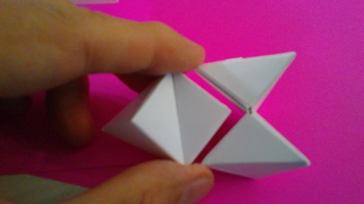 The Gluck Interlock: Take one unglued form and place it upside down on top of another unit. Glue in place. This base form gives you many places to glue additional units.