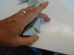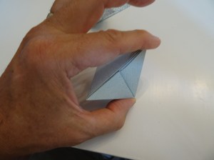 Once you have folded these you need to pull up a corner point like a dorsal fin on a shark.