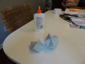 If you have left over paper with interesting colors or designs, this is a great way to turn it into a cool project. This project makes a nice finished decorative form. It has 24 different surfaces that can be decorated or to which a message can be added. They are sturdy enough to use as a throw- and- catch ball as well.