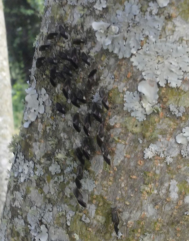 I discovered these interesting creatures while we were walking around the yard of our friend’s house that had recently moved to a house out in the country on a large lot. My wife and a couple other ladies saw them on the trunk of a Mimosa tree and called me over to identify them. When I took a look I did not know what insects they were. I only recognized that they must be some type of “true bug” because of the way their wings overlapped on their backs. I had to do some research to find out what they were.