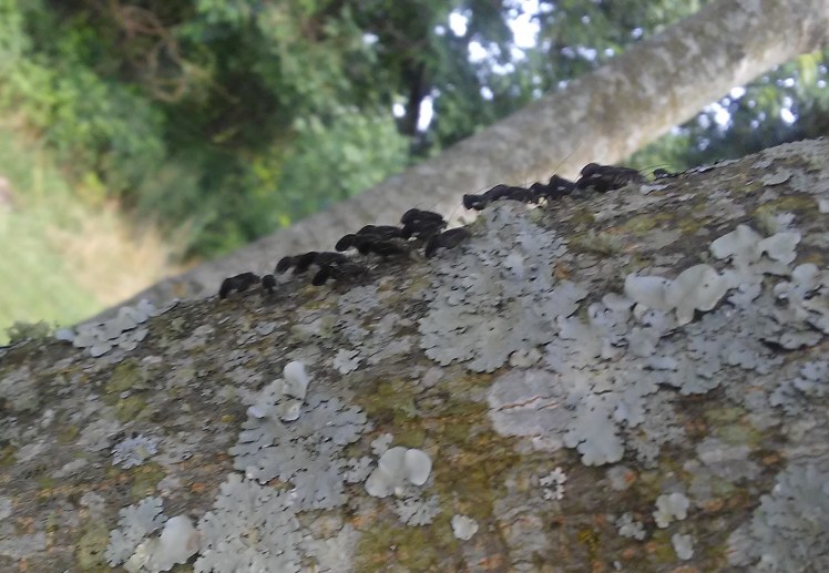 One characteristic that sets these insects apart is the way they travel around on the bark of trees. They wander like a herd of cattle. Traveling in groups makes them appear larger than they are so that predators have to think twice before taking on the large group. Like cattle, these creatures are grazing as they move around. Guess what they eat?