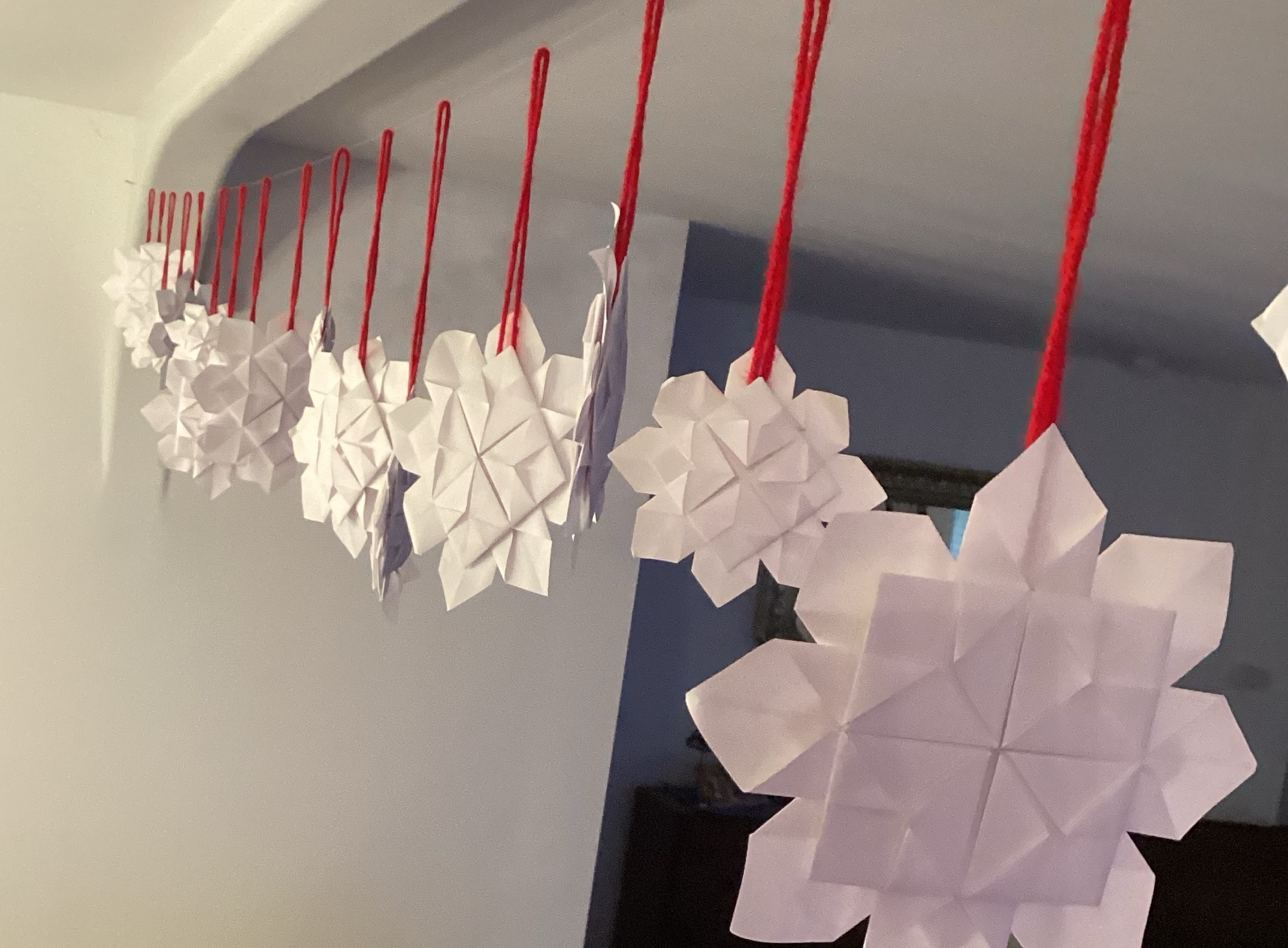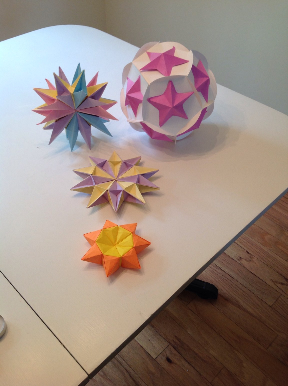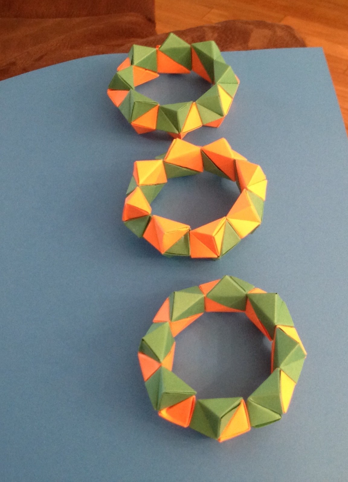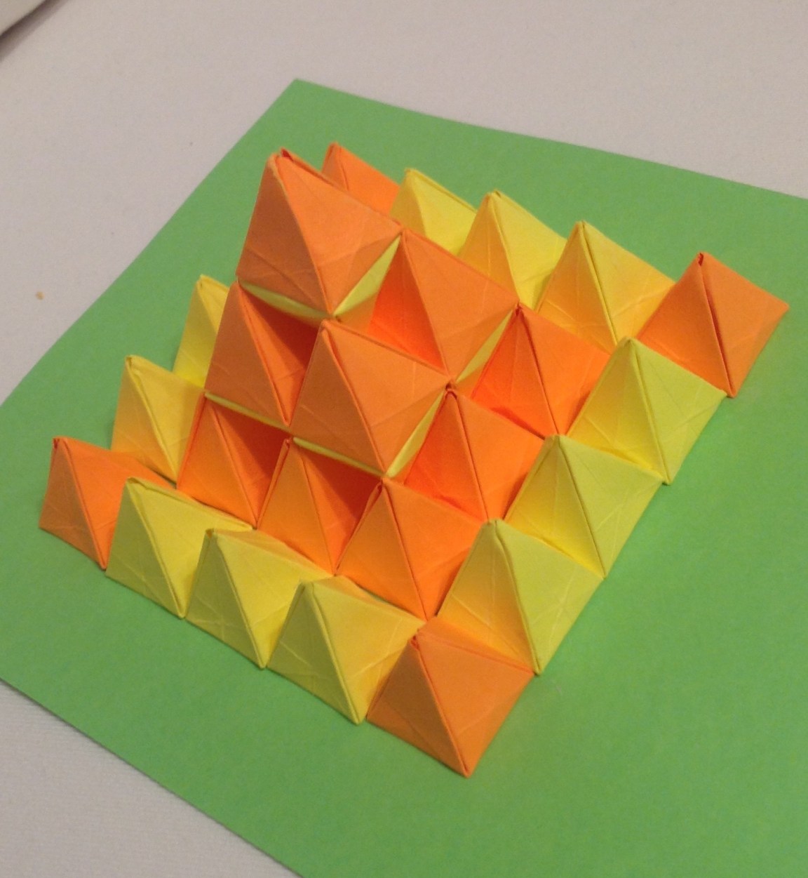 By varying the colors of the paper pieces you can create wonderful patterns like those that follow: